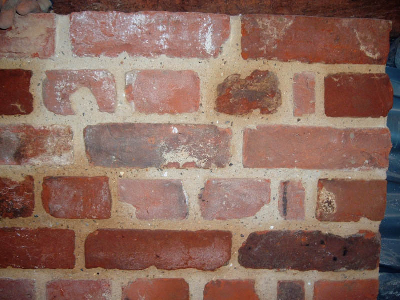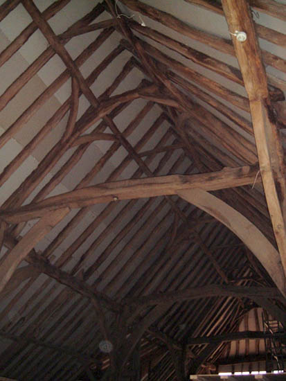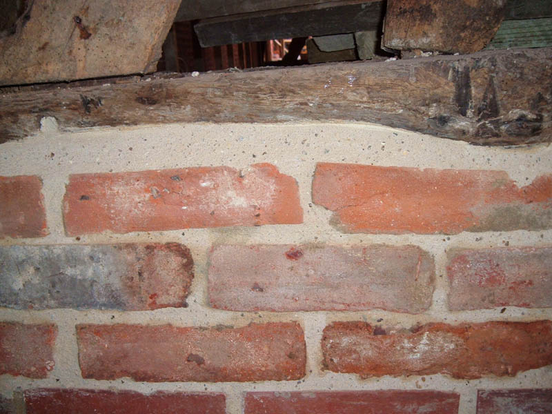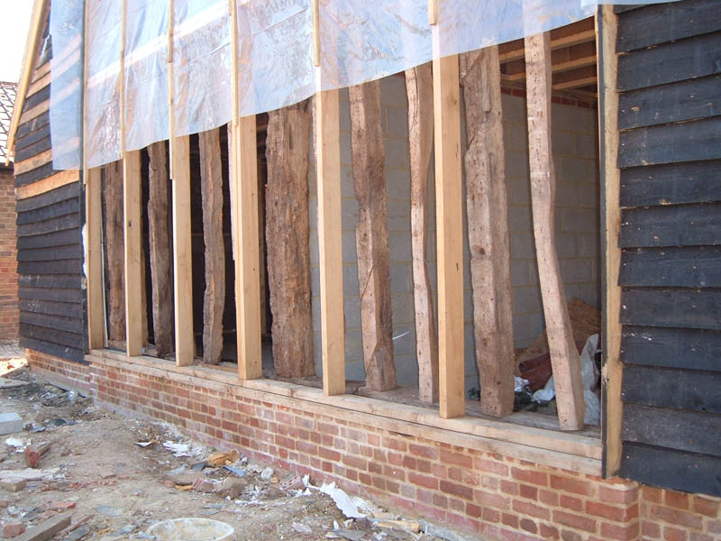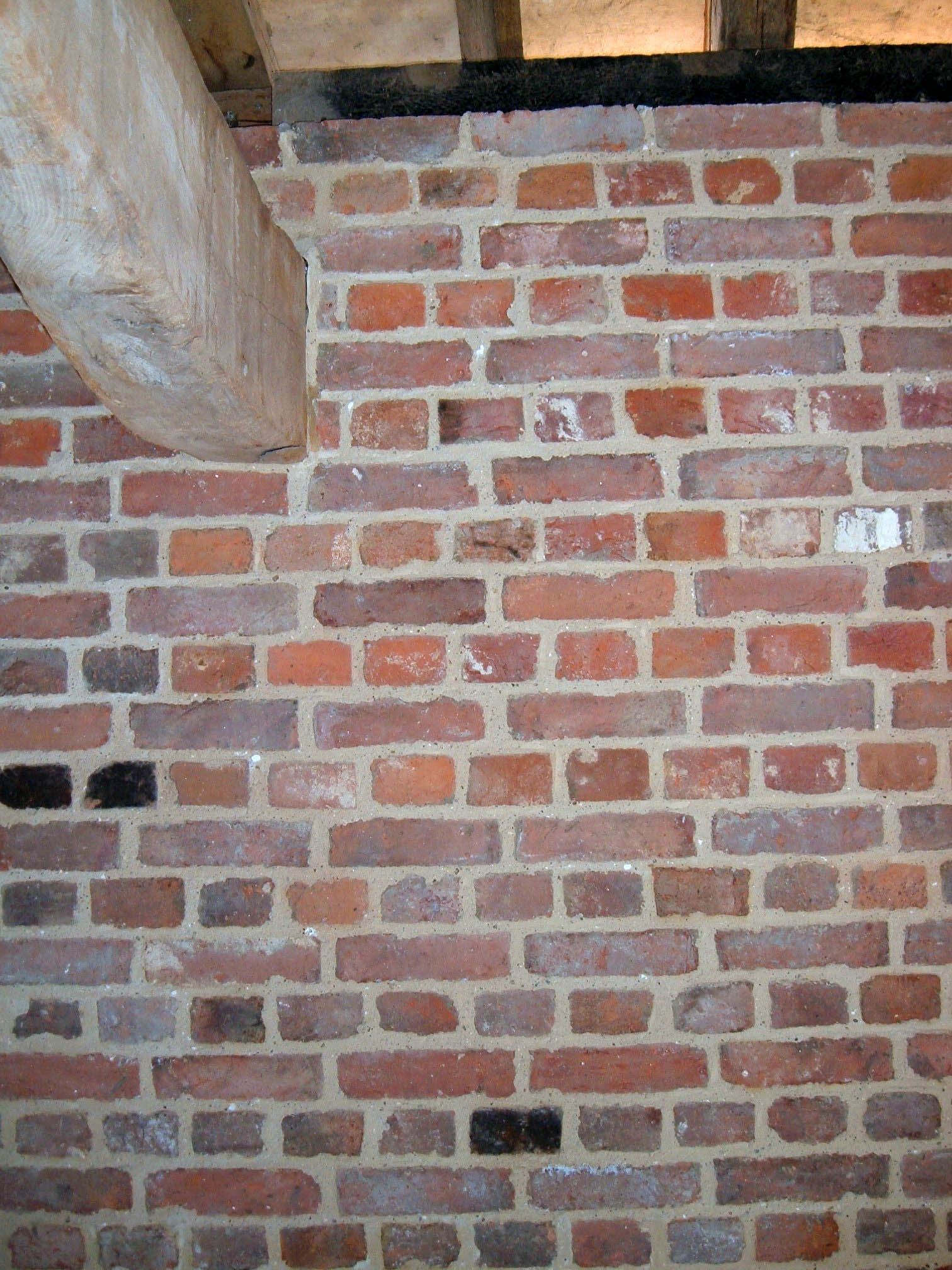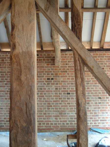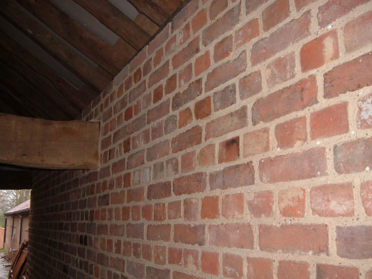 BARN CONVERSION. The oldest timbers were dated to over 400 years old. The internal and external brickwork supporting the timber structure was pointed using hydraulic lime based mortar. The pointing was brushed back to reveal the arrises of the bricks and aggregate in the mortar. (Click images for full size picture) |