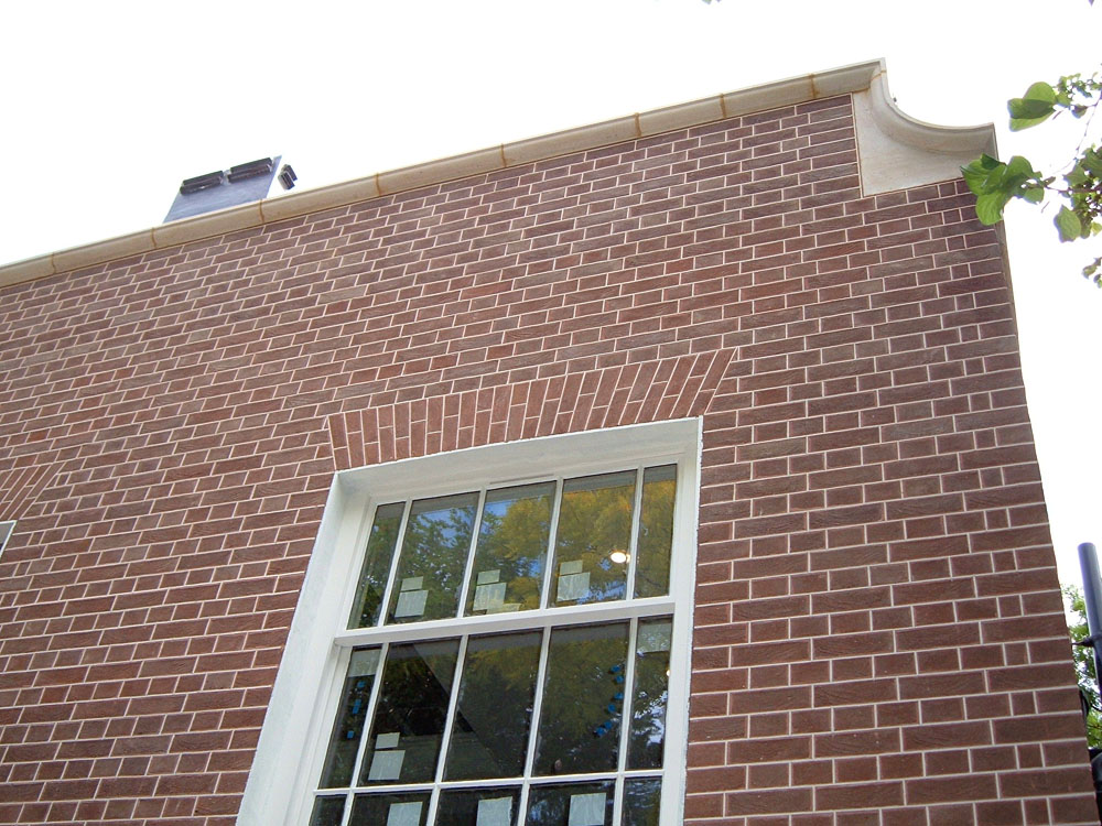 The development of tuckpointing towards the end of the seventeenth century in England was in part due to the cost of gauged brickwork [see gauged brickwork overview], which it mimics.